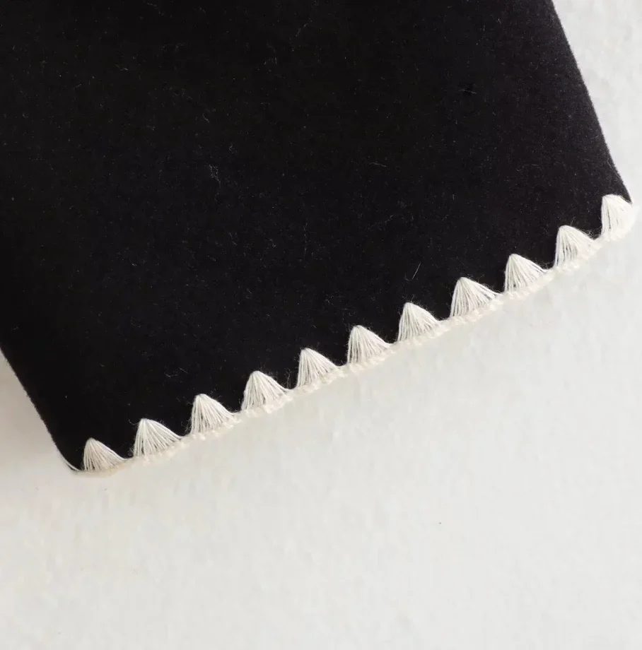Nellie | Black Wool Cape Coat with Contrast Trim
